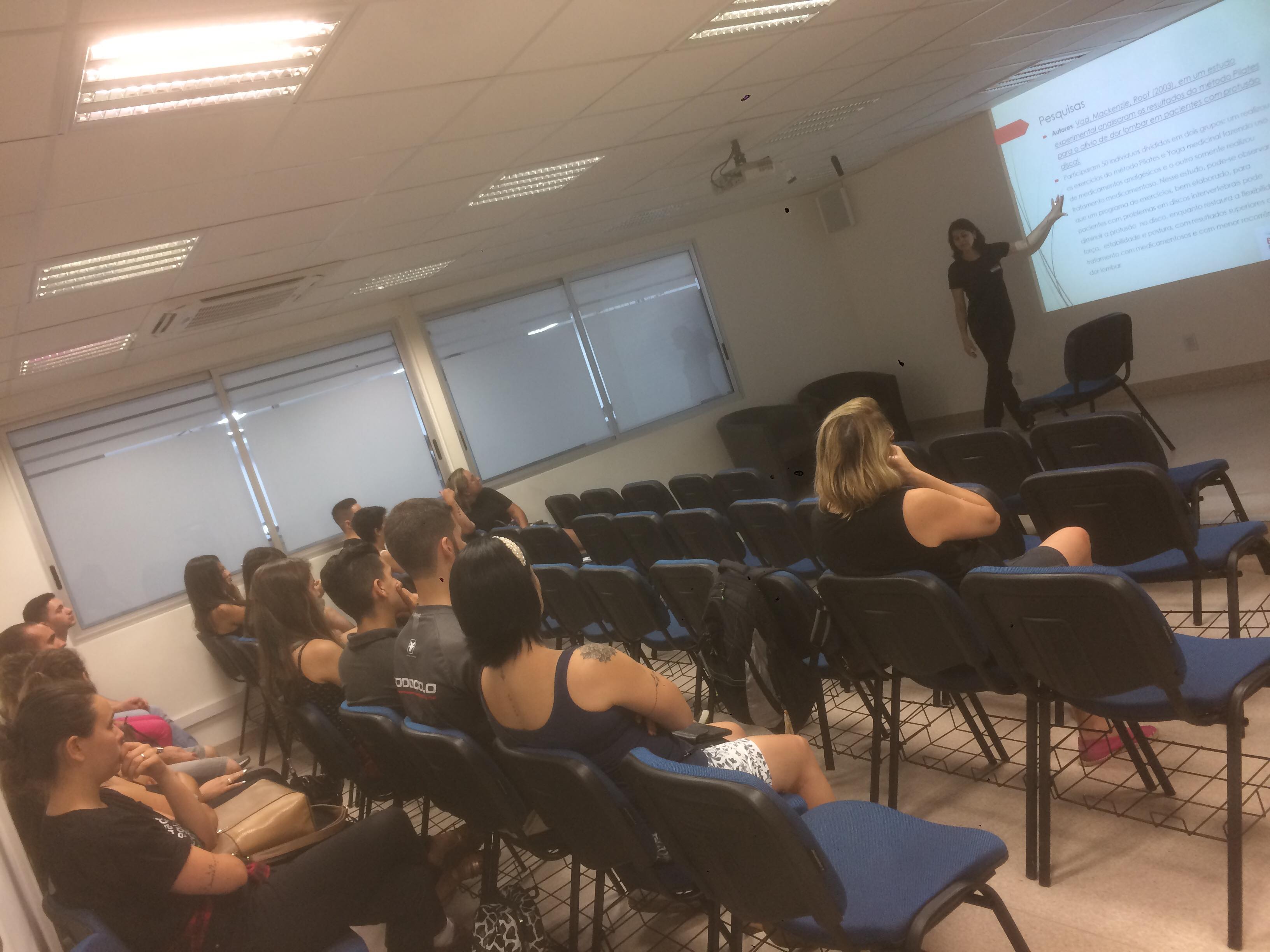 Silvana Bueno ministrou uma aula sobre Pilates e Hérnia de disco, para os alunos de fisioterapia da FADERGS.